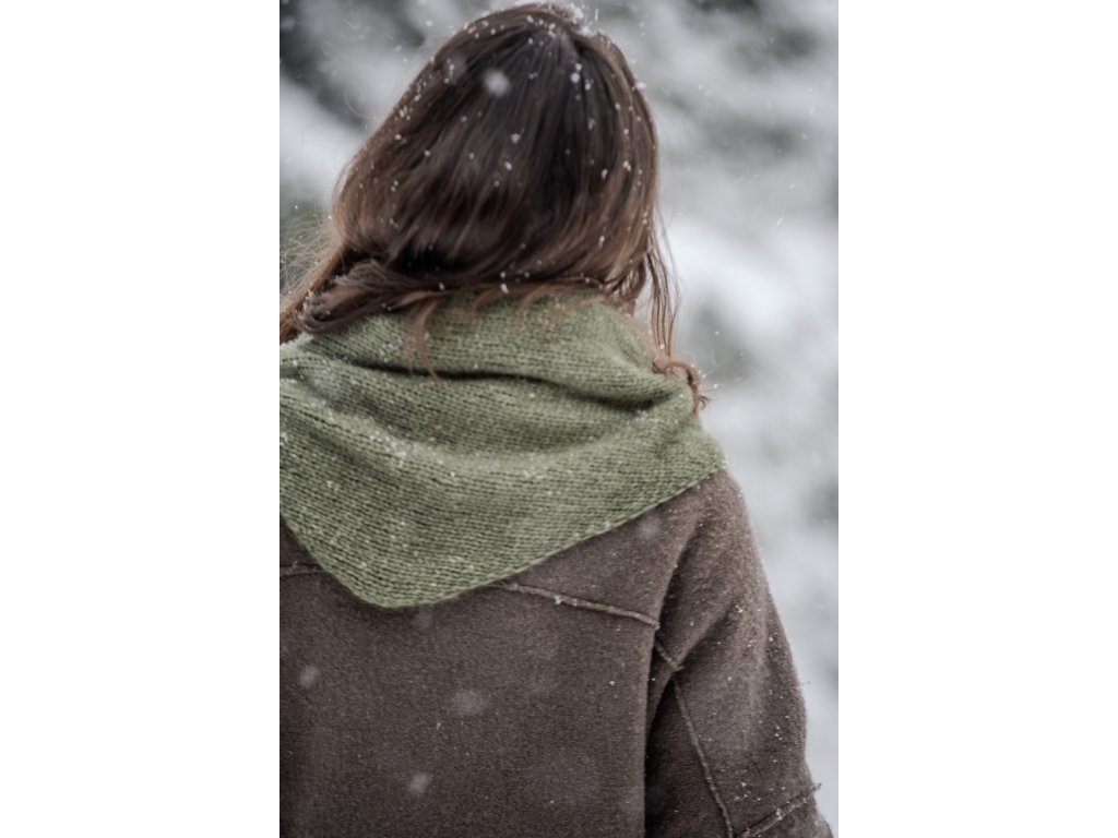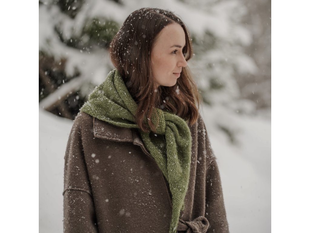 Nadčasový, minimalistický, trojúhelníkový šátek z úžasně příjemné, vzdušné, hřejivé příze s převahou baby alpaky.