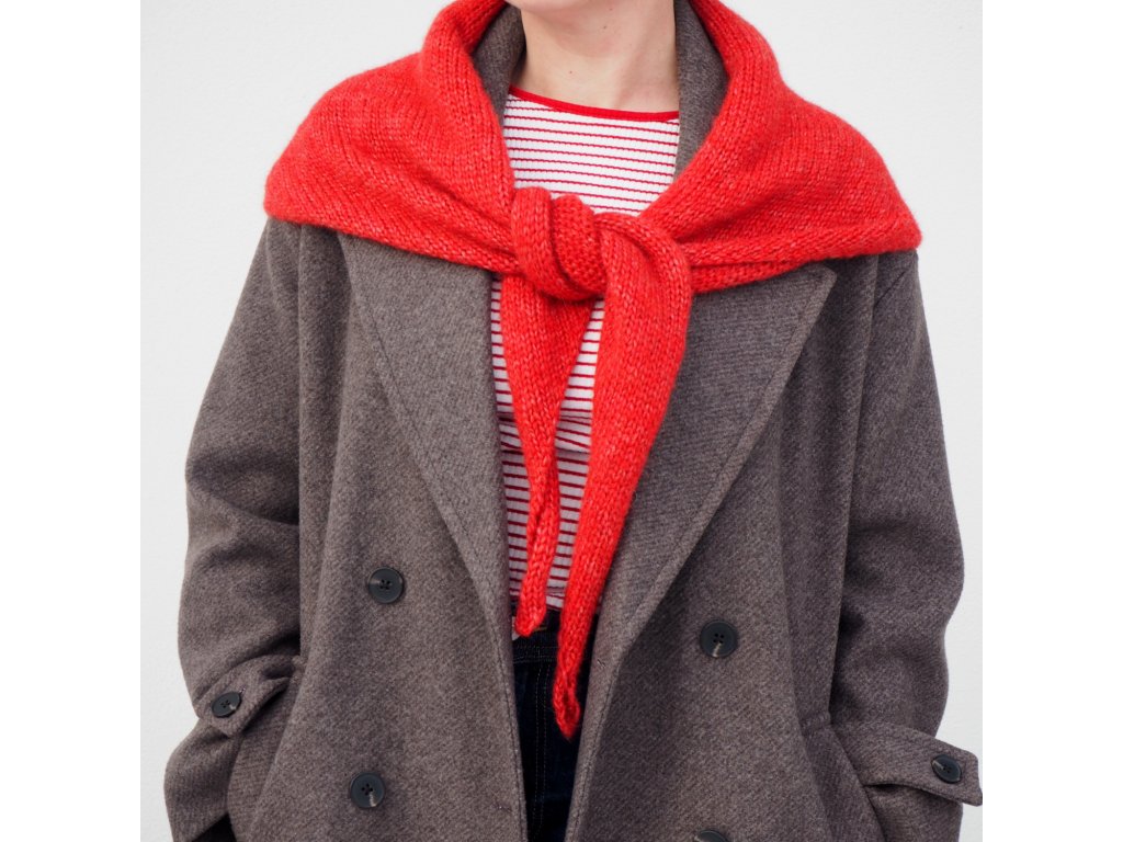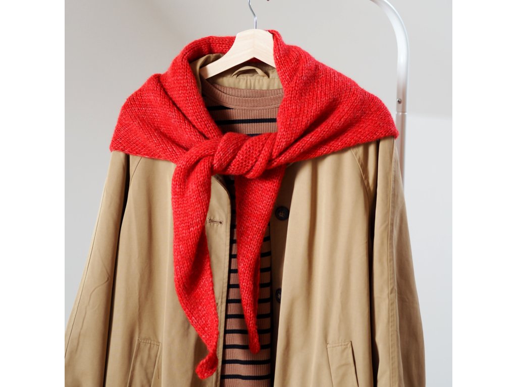 Nadčasový, minimalistický, trojúhelníkový šátek z úžasně příjemné, vzdušné, hřejivé příze s převahou baby alpaky.