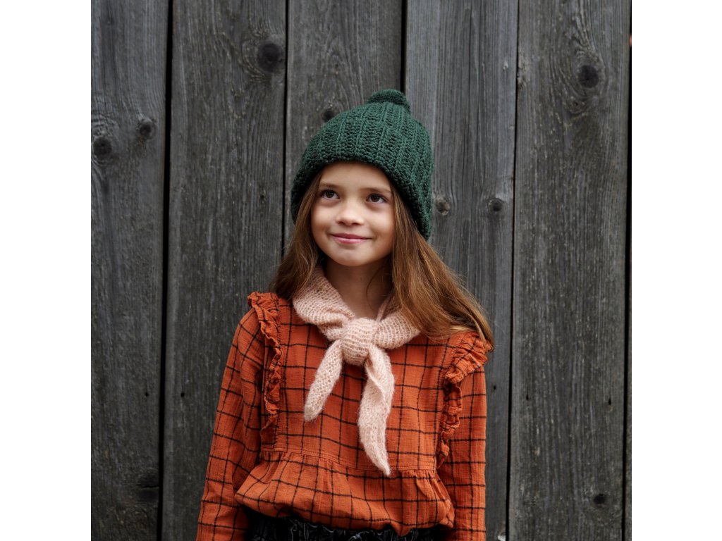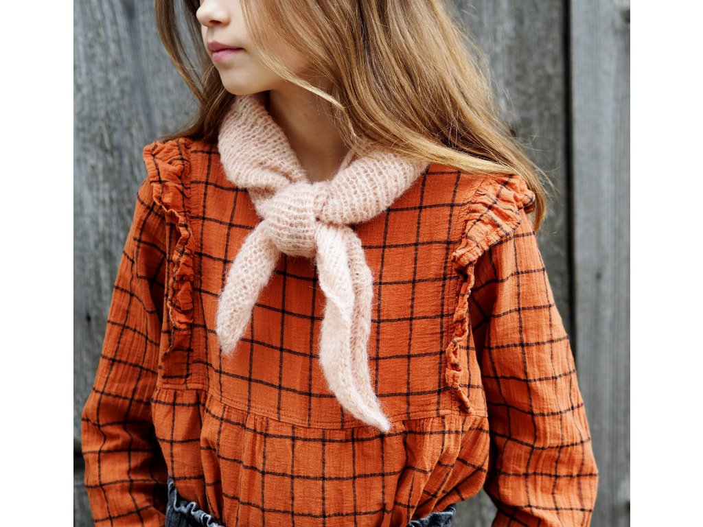 Ručně pletený, trojúhelníkový šátek ze směsi jemné vlny alpaky a hedvábí. Uvažte si jej s uzlem kolem krku, nebo do vlasů a užijte si jak zpestří váš outfit. Příjemné zahřátí je samozřejmostí :)
